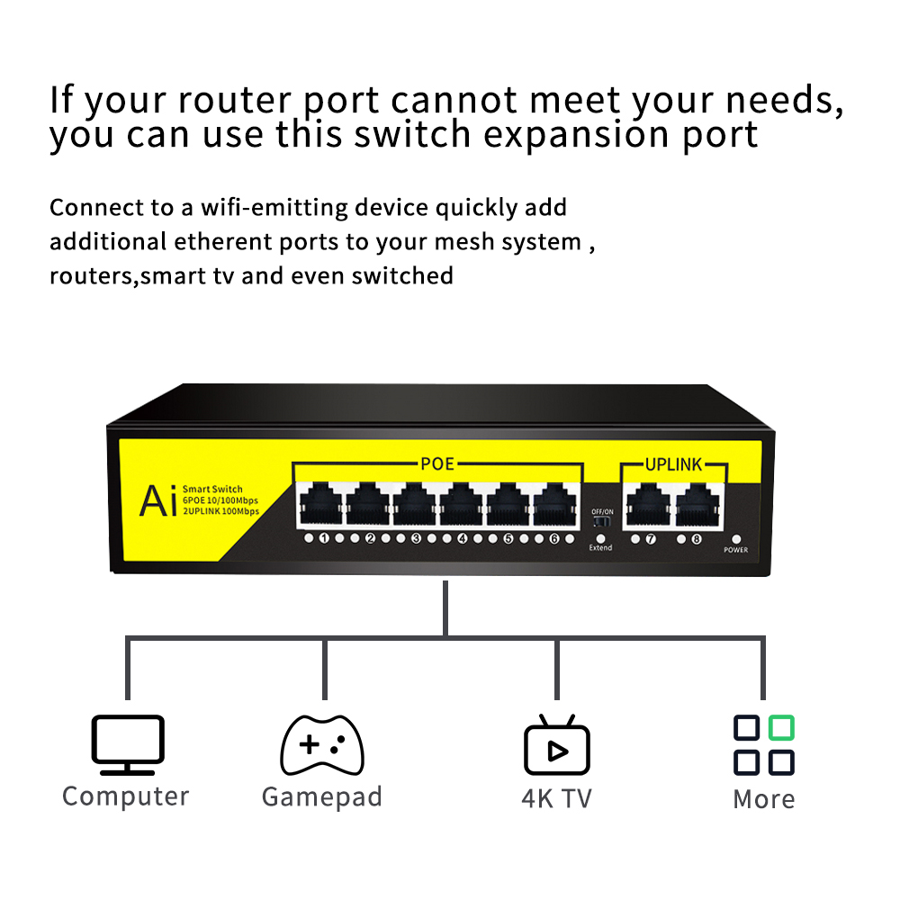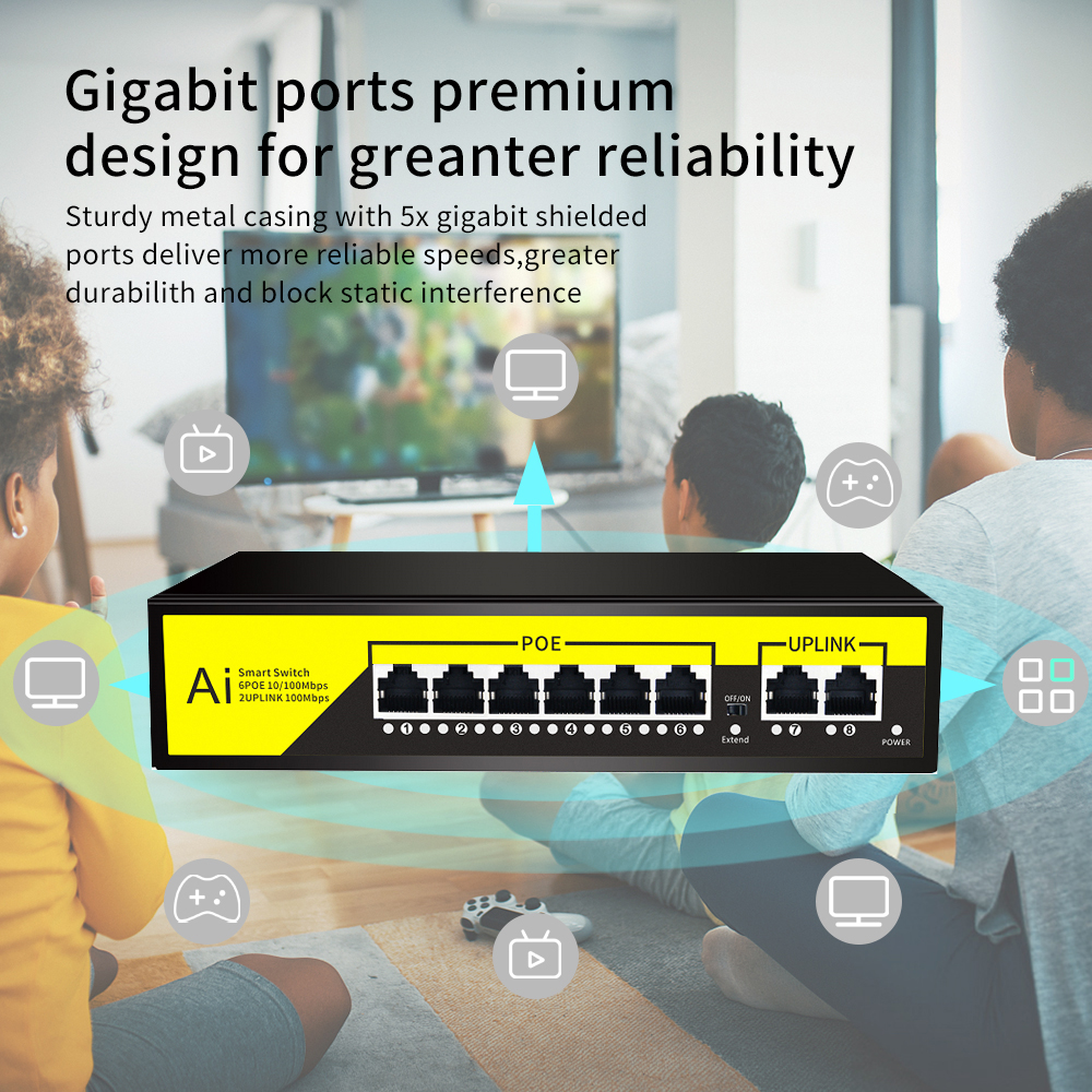 – ✅ PoE RJ45 Ports: 6× 10/100/1000Mbps