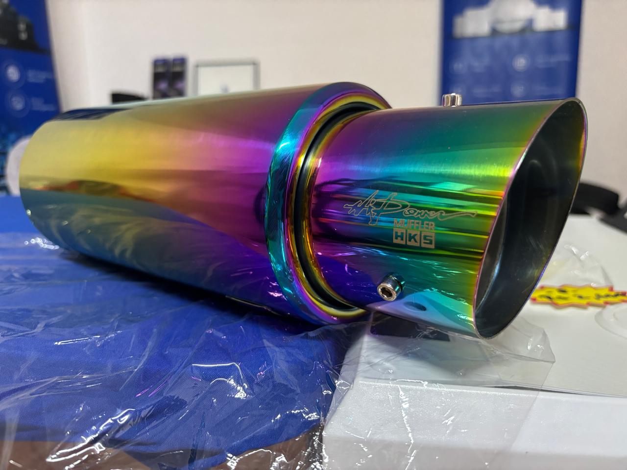 HKS Universal Rainbow-Tinted Round Muffler (Straight-Through Design) – Ref #7