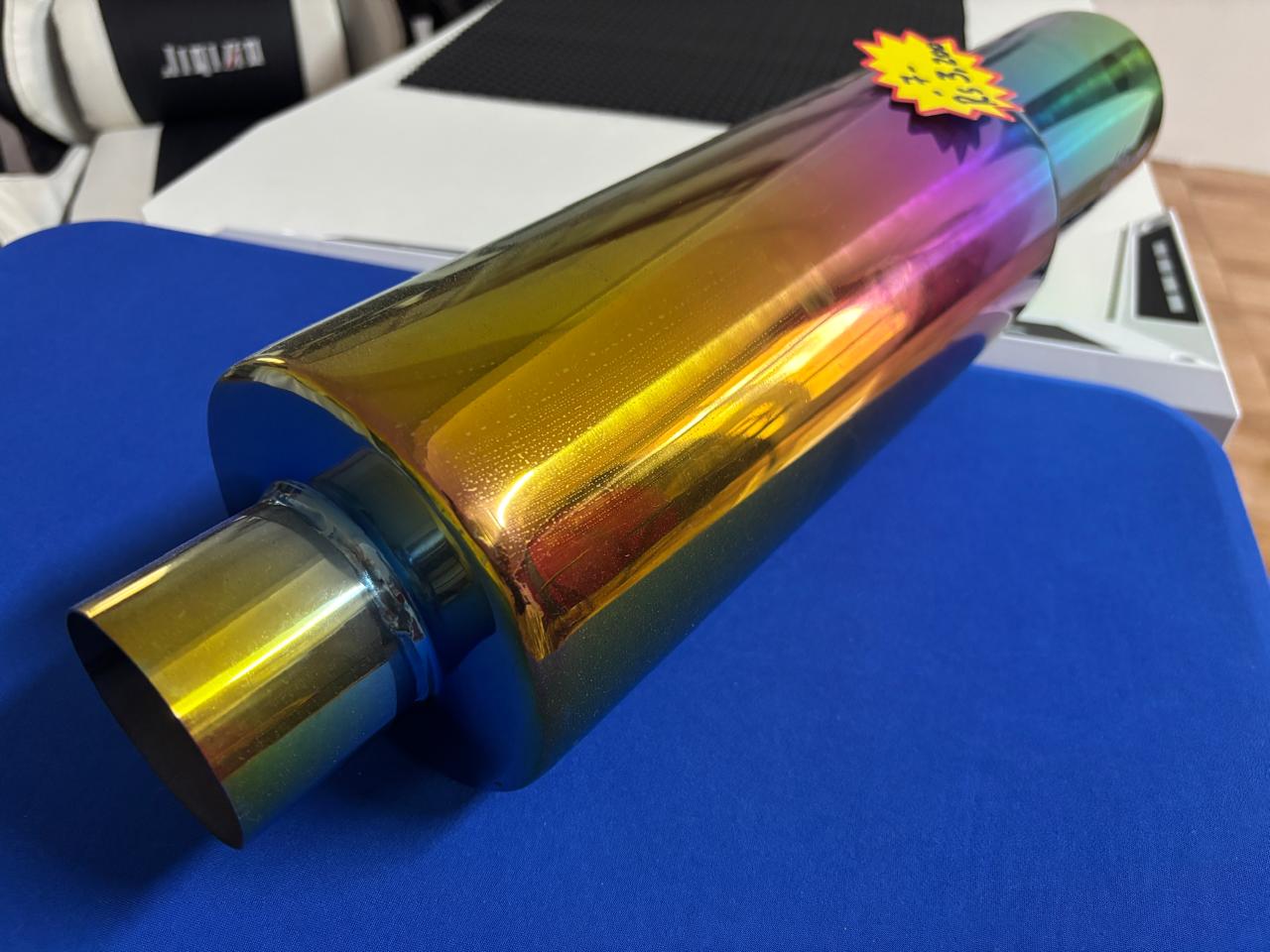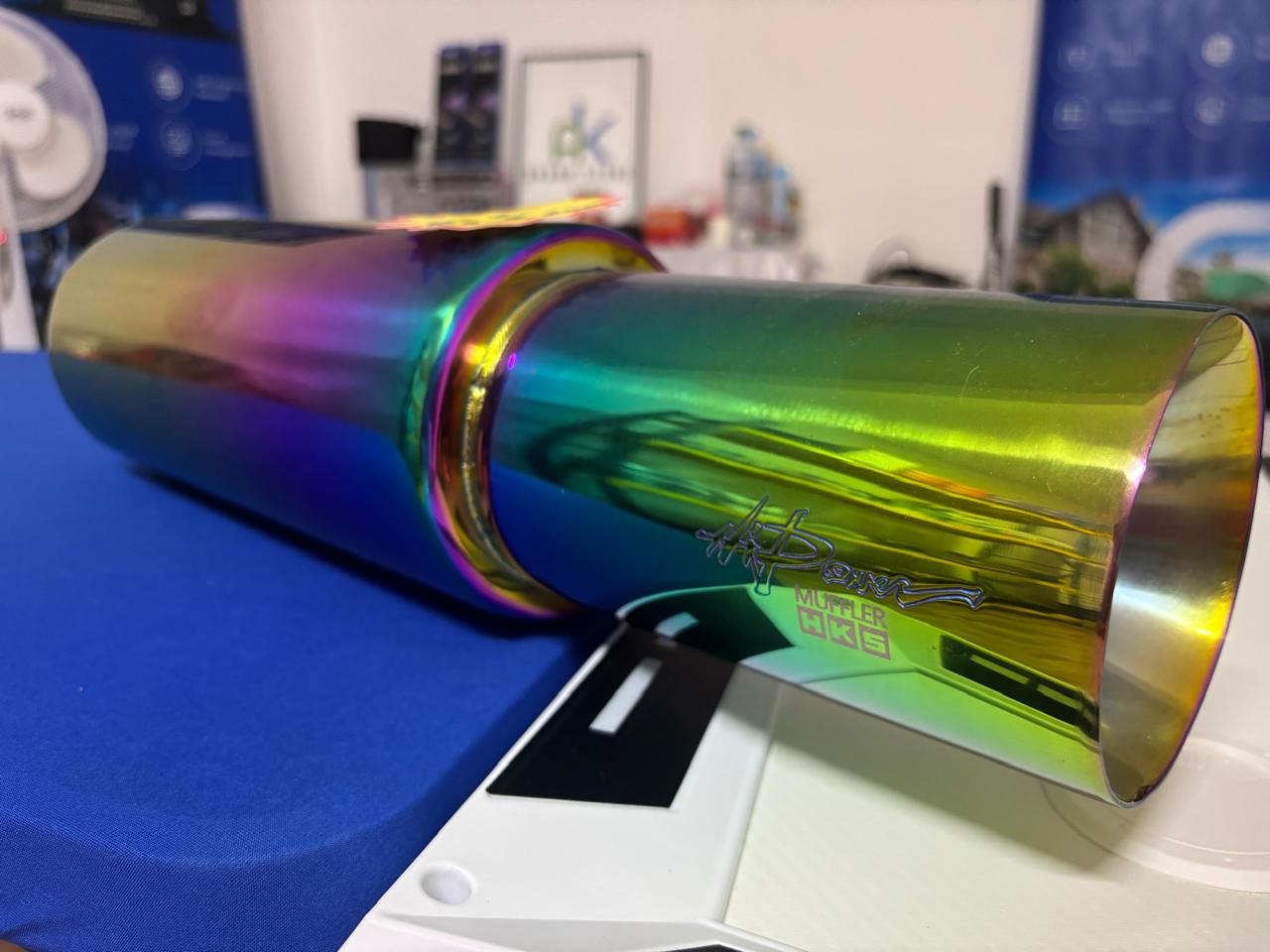 🌈 HKS Universal Rainbow-Tinted Round Muffler (Straight-Through Design) – Ref #7