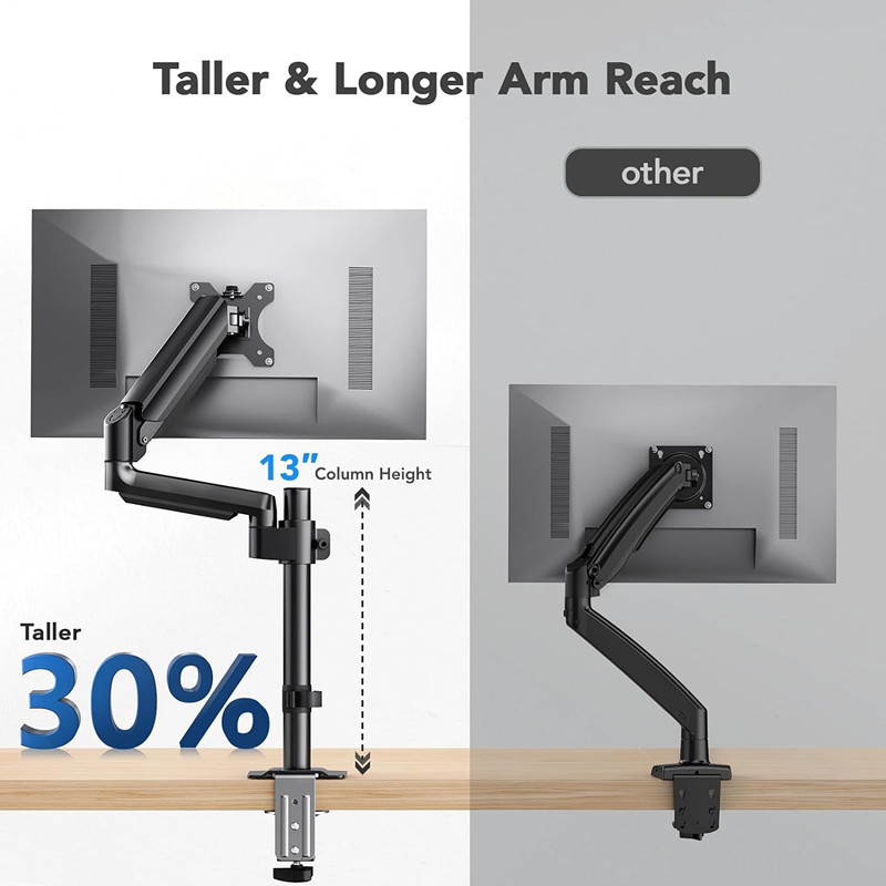 Upgrade your workspace with this sleek, ergonomic gas-spring monitor arm—designed to support a wide range of screen sizes while freeing up valuable desk space. Whether you’re working, gaming, or designing, this adjustable arm delivers smooth motion, optimal viewing angles, and a clutter-free setup.